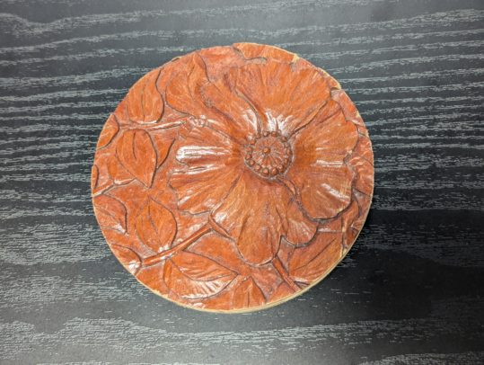 丸に切り抜いてみました。何の花の彫刻なのかはわかりません。