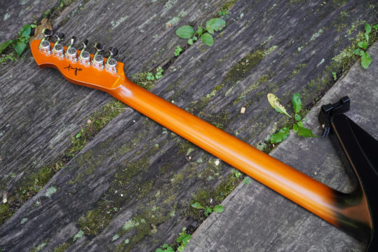- ネック・ヘッド裏カラー: ナチュラルで濃いめの飴色