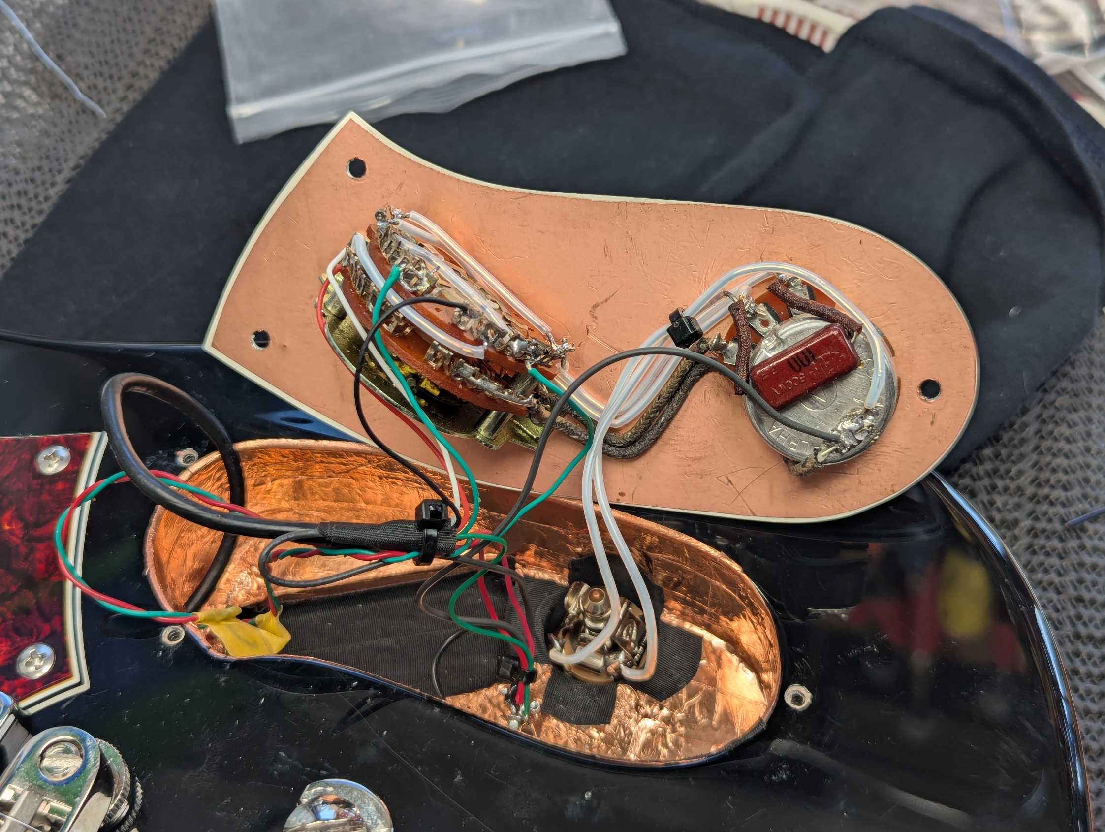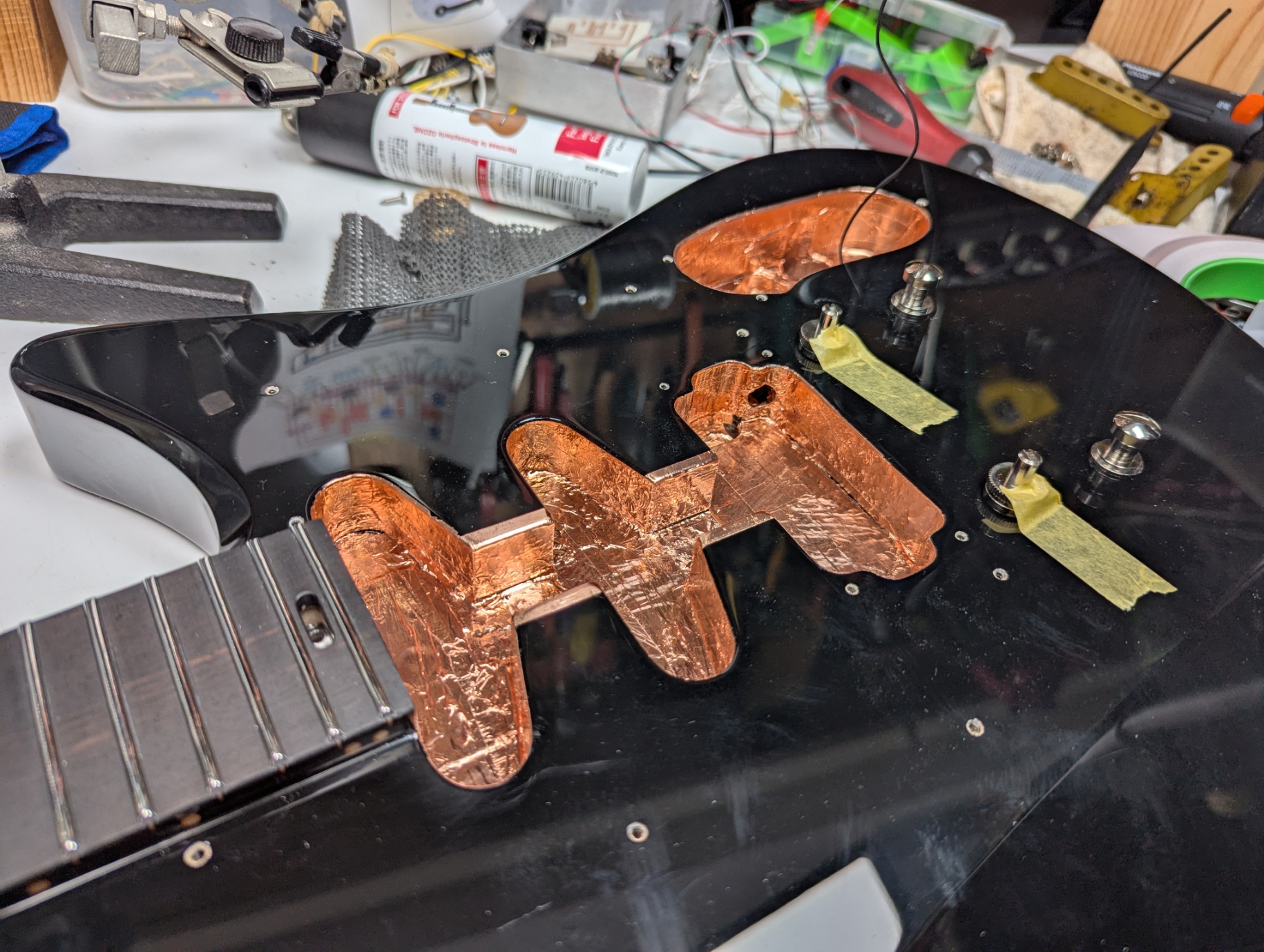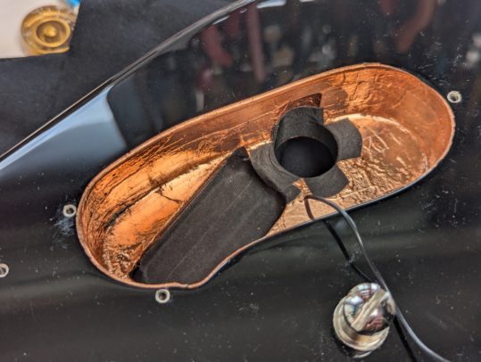 ノイズ対策のために、ピックアップキャビティにシールディングを施していきます。