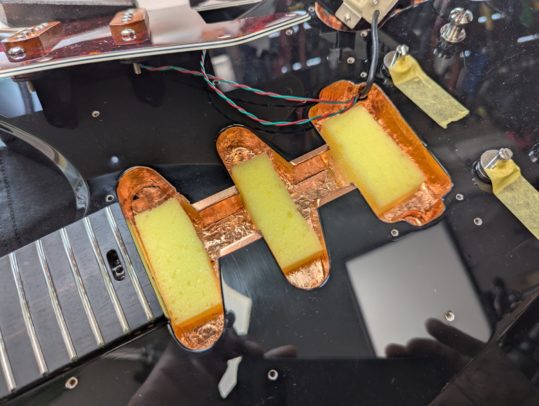 ステージ上で、蓄光ポジションマークは必須です。「グランドリオン2」の製作時、蓄光マークをアルミパイプの中に入れて貰ったのを参考に、今回は銅パイプの中に仕込んでみました。銅の色のスチームパンク感が好きです。