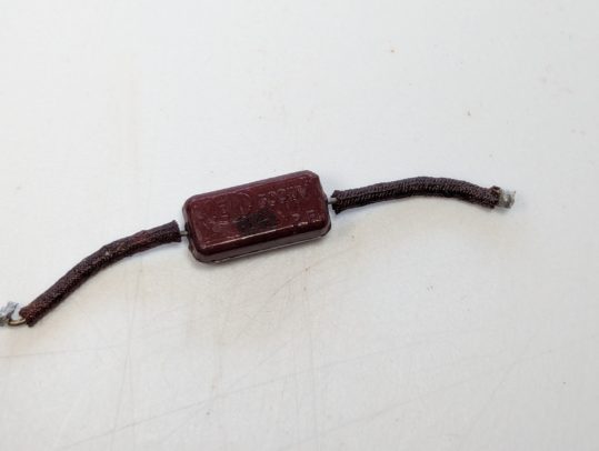 今回のハイパスコンデンサは、国産の謎のコンデンサ100pF。1970年代のアナログミキサーの残骸から取り外したものです。