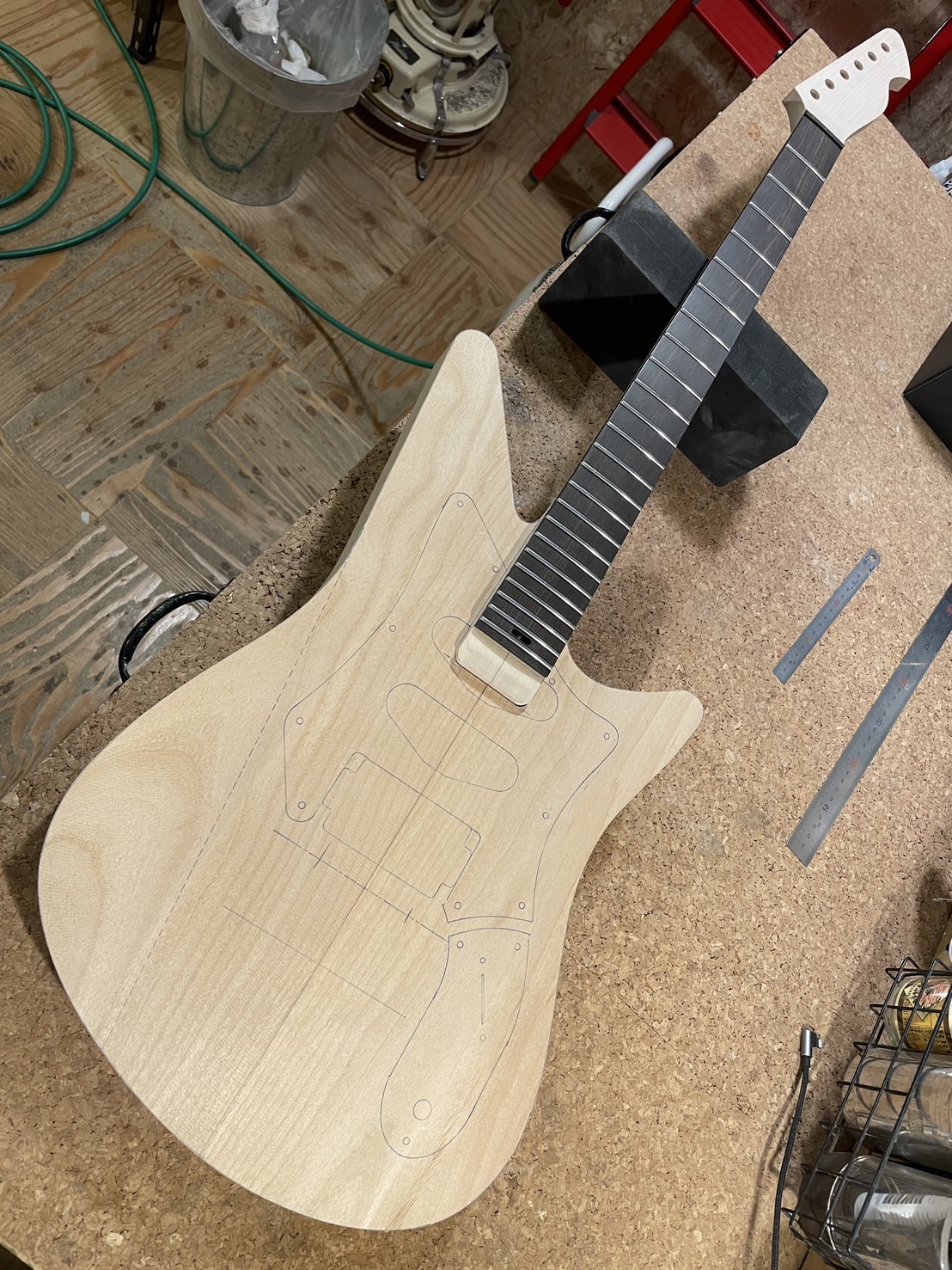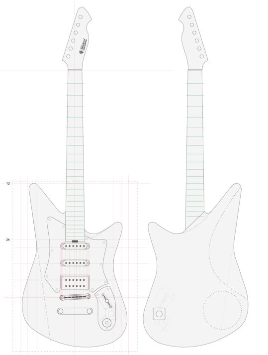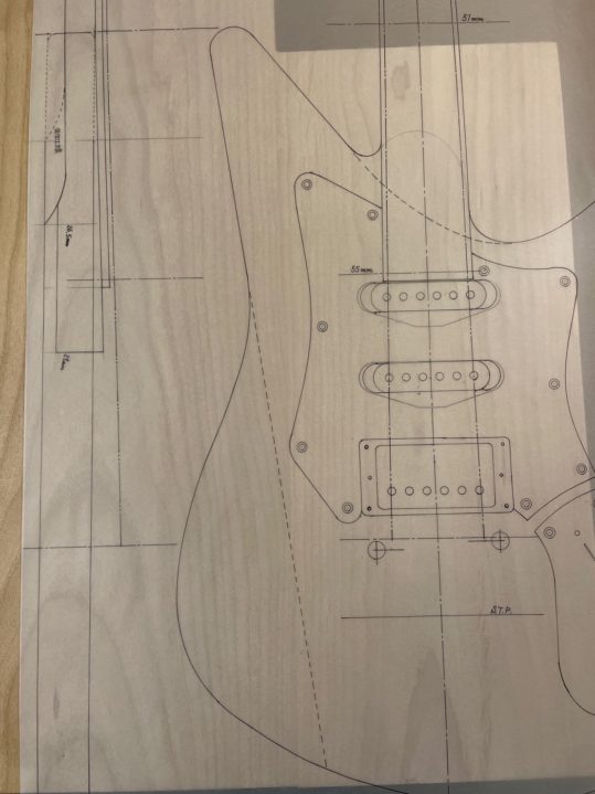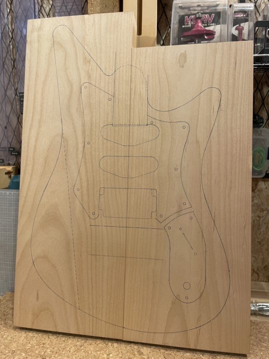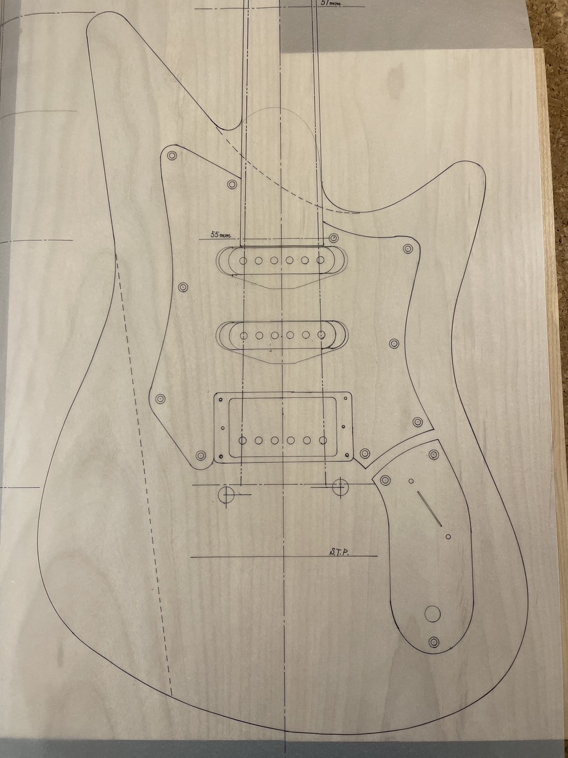 3月下旬、2ピースアルダー材に描かれたボディの完成イメージ。