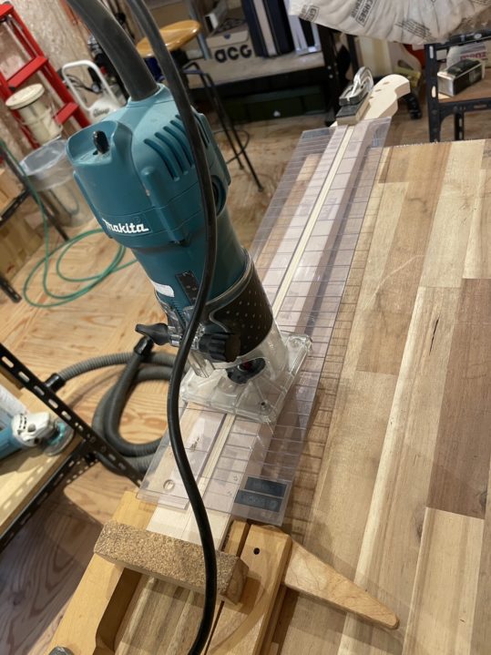 ボディが切り出せたらネックを仕込むポケットを切削します。