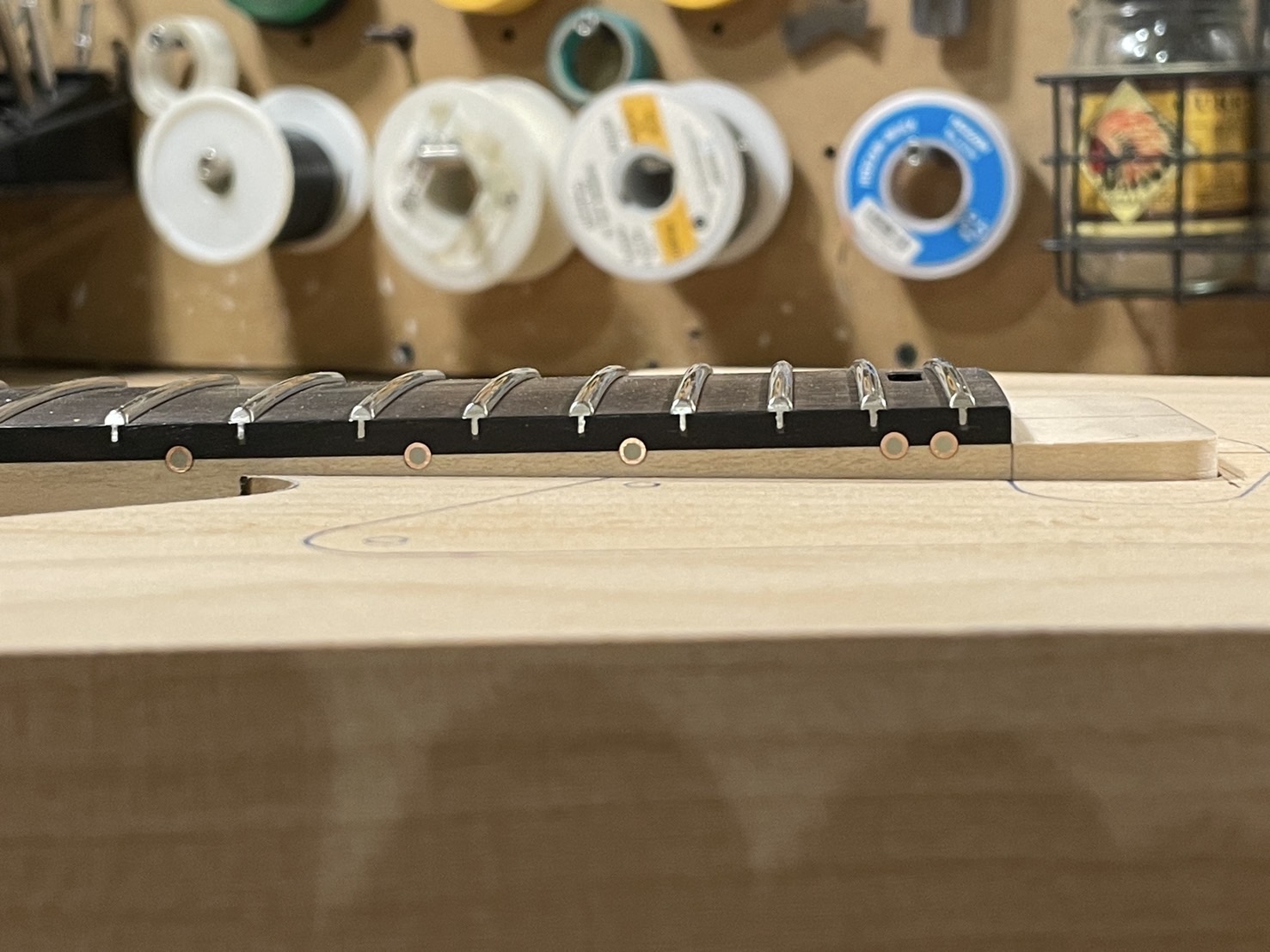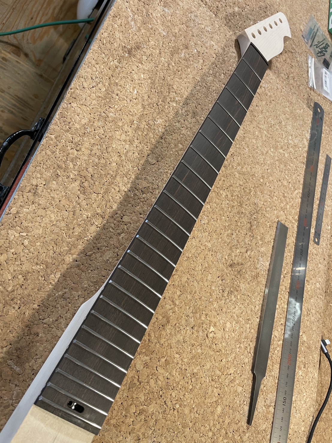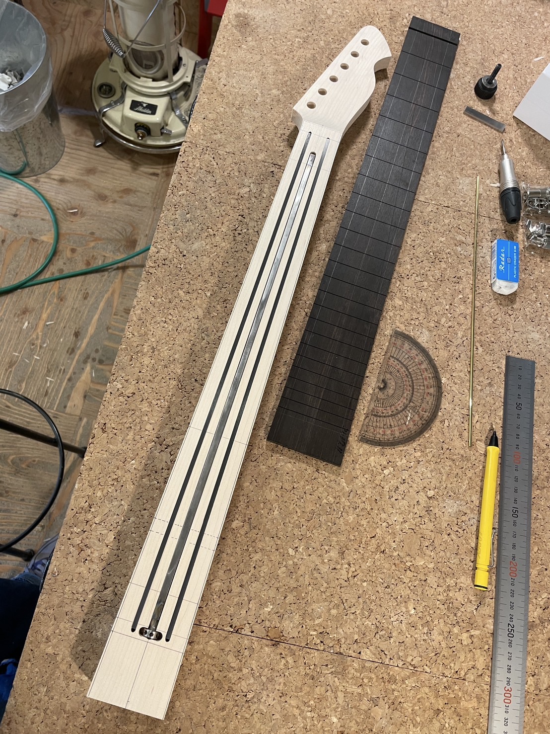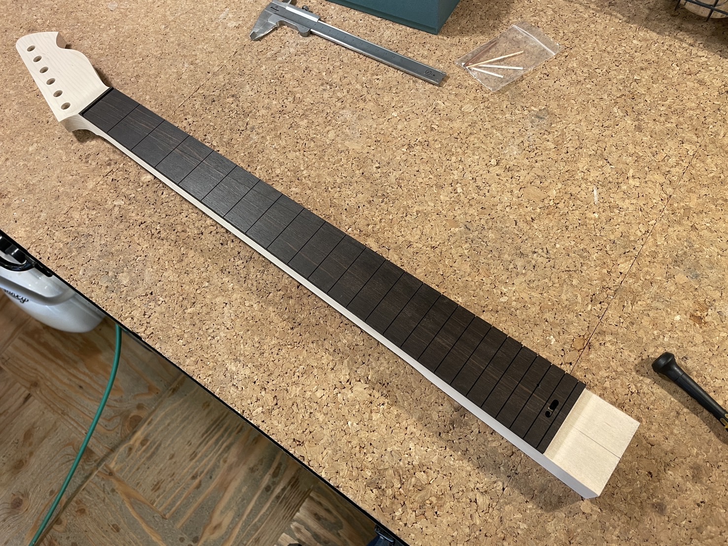 フレットが打ち込み終わるとすっかりギター感が出てきますね。