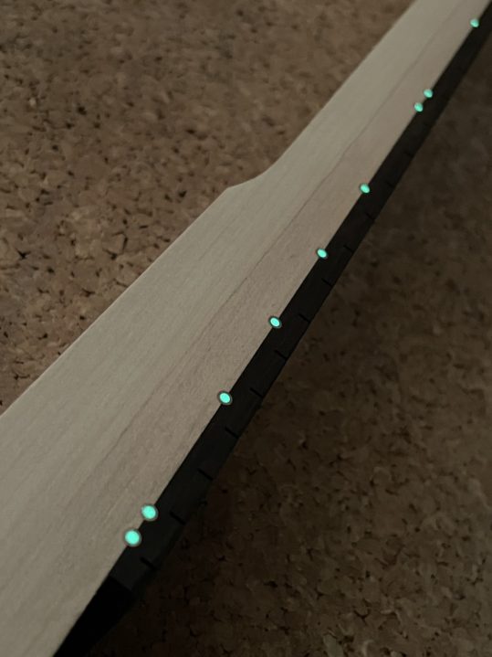 Luminlayの蓄光材はちょっと暗いだけでも光るので嬉しいです。それでいて奏者以外にはそこまで目立たない。