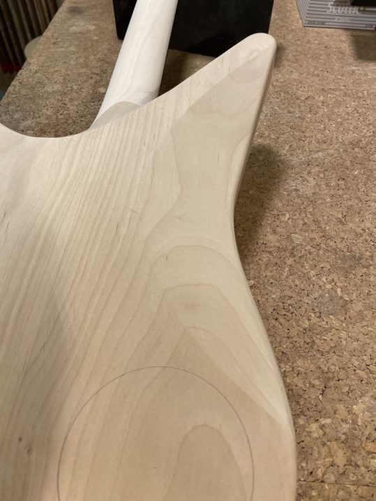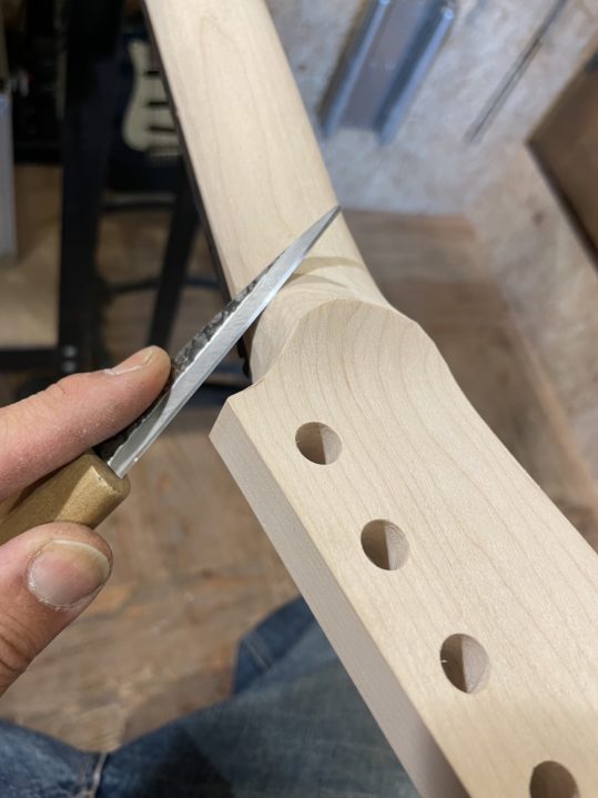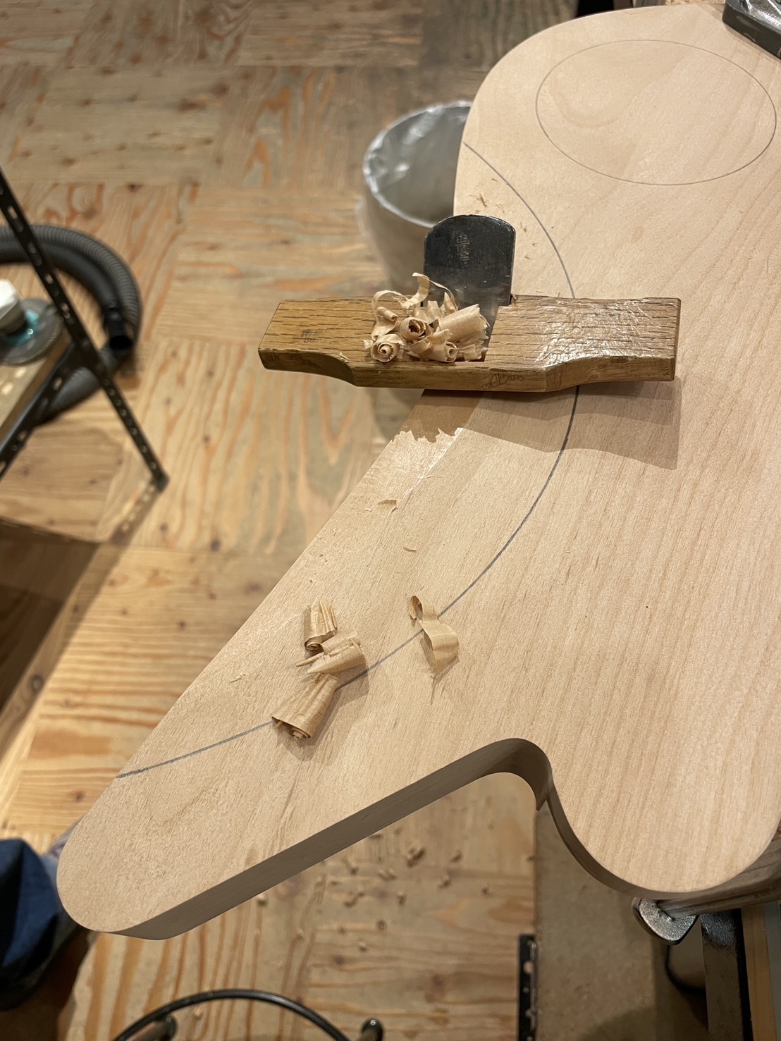 ハイポジションの演奏性を高めるためのコンター加工。普段ハイポジションはあまり弾かないけれど、ごくたまに弾く時のために。