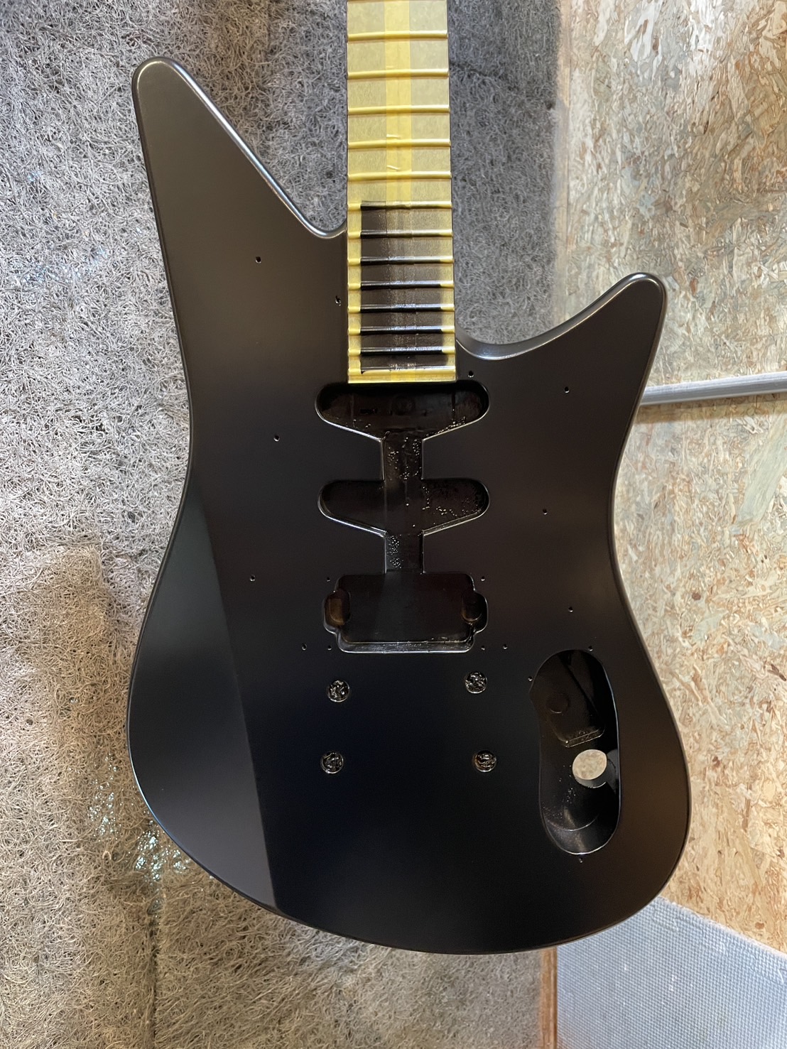 なんどもワガママを聞いてくださってありがとうございます。この後トップコートとしてクリア塗装され、1~2週間の乾燥。そしてネックグリップ部にはツヤ消しのマット塗装が行われました。