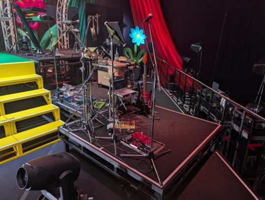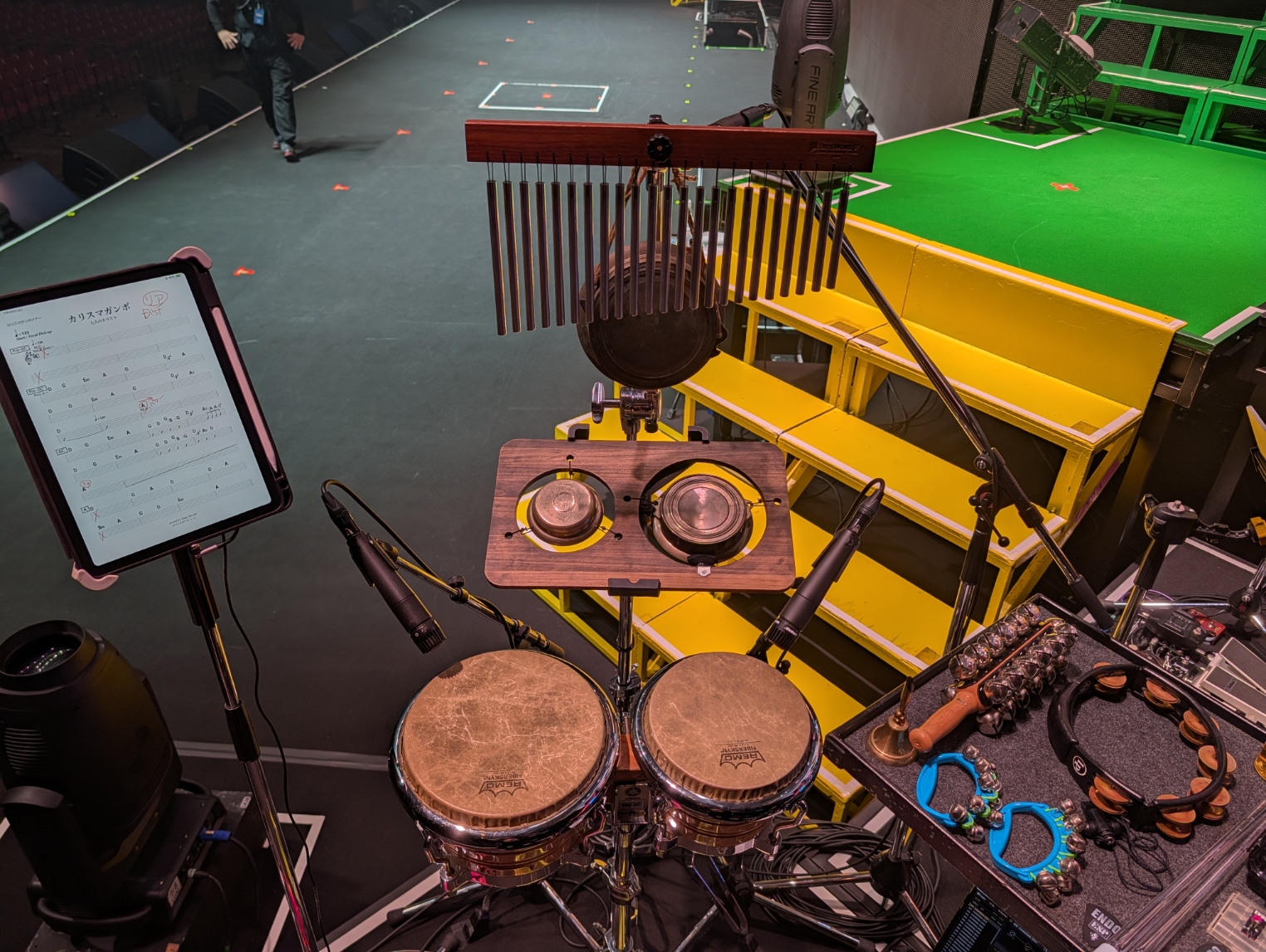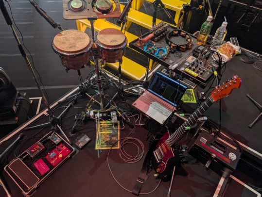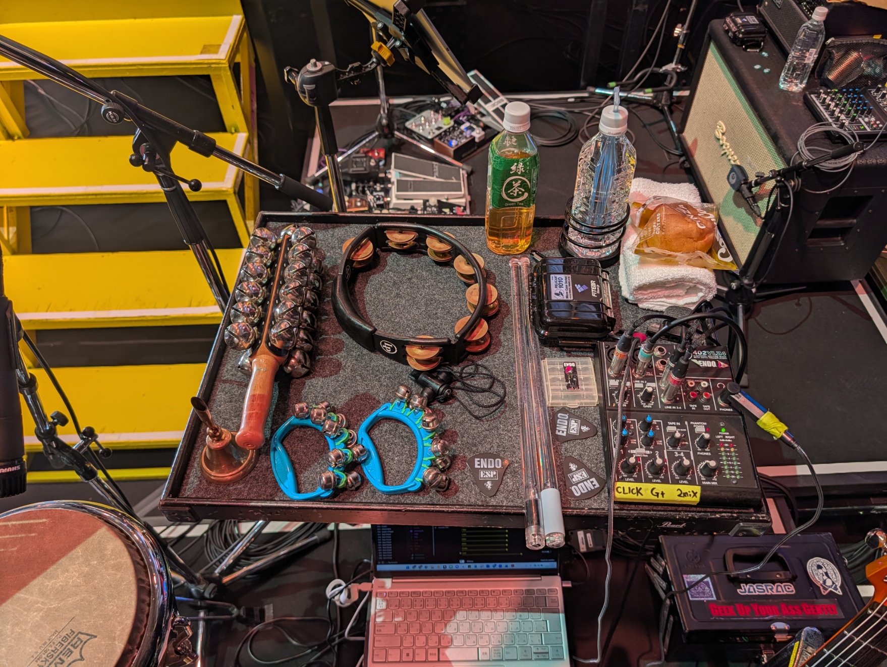 ただカリスマのライブではパーカッションや効果音も担当しているので、小道具多めです。